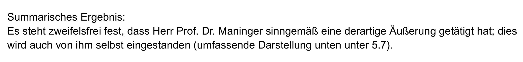 Im Untersuchungsbericht steht dazu jedoch das Gegenteil: „Es steht zweifelsfrei fest, dass Herr Prof. Dr. Maninger sinngemäß eine derartige Äußerung getätigt hat; dies wird auch von ihm selbst eingestanden.“