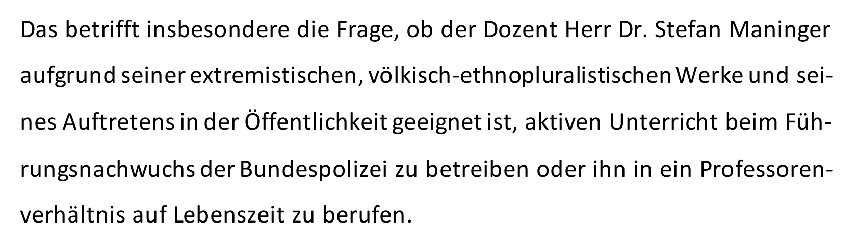 Man darf Stephan Maninger als fremdenfeindlich bezeichnen, sagt ein Gericht. Dass ein Gericht darüber verhandelt, ob man ihm rassistische, autoritäre und verfassungsfeindliche Positionen zuschreiben darf, hat vor allem einen Grund: Maninger bildet Polizist*innen aus. Er ist Professor für Sicherheitspolitik bei der Bundespolizei.
